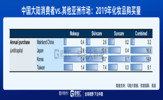 中國(guó)化妝品行業(yè)的空間和格局 中國(guó)化妝品行業(yè)未來(lái)的發(fā)展空間大,增長(zhǎng)確定性強(qiáng)。 參考其他亞洲國(guó)家的情況可發(fā)現(xiàn),化妝品消費(fèi)水平和GDP之間存在較強(qiáng)的正相關(guān)關(guān)系。2019年中國(guó)化妝品支出/實(shí)際GDP為0.3%,而日韓的占比則為0.5~0.6%。 所謂市場(chǎng)發(fā)展?jié)摿Υ?,也就是天花板高,人均化妝品消費(fèi)水平的上升空間大。歐睿國(guó)際數(shù)據(jù)顯示,2019年我國(guó)消費(fèi)者人均購(gòu)買3件化妝品。對(duì)比之下,日韓消費(fèi)者人均購(gòu)買15~1