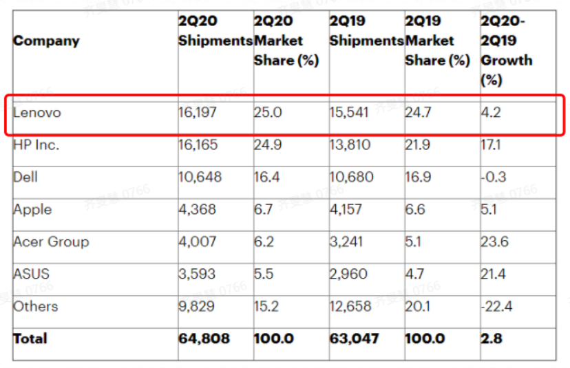 財報顯示,受疫情影響,在家工作、學習和游戲的需求明顯促進了PC的銷售。據Gartner的統計數據,聯想在2020年第二季度繼續保持全球PC市場第一的位置,出貨量同比增長4.2%,高于全球PC市場的整體增長。也就是說,聯想抓住了疫情催生的新機遇,PC業務在市場的領先地位依然穩固。